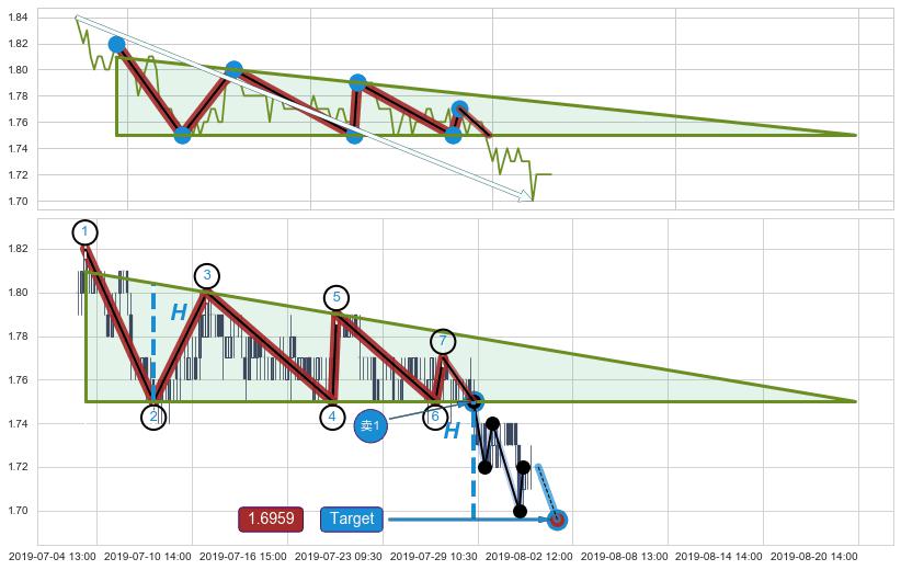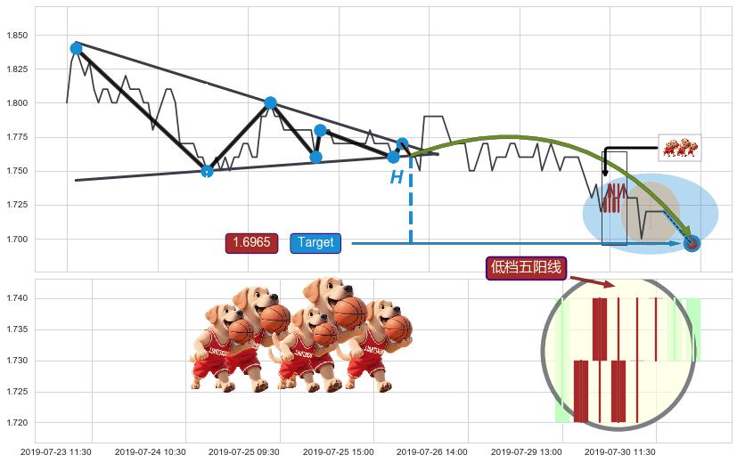➣ AI预测: 假定反转启动后, 第❶目标位置(08-19:15, 1.7408)