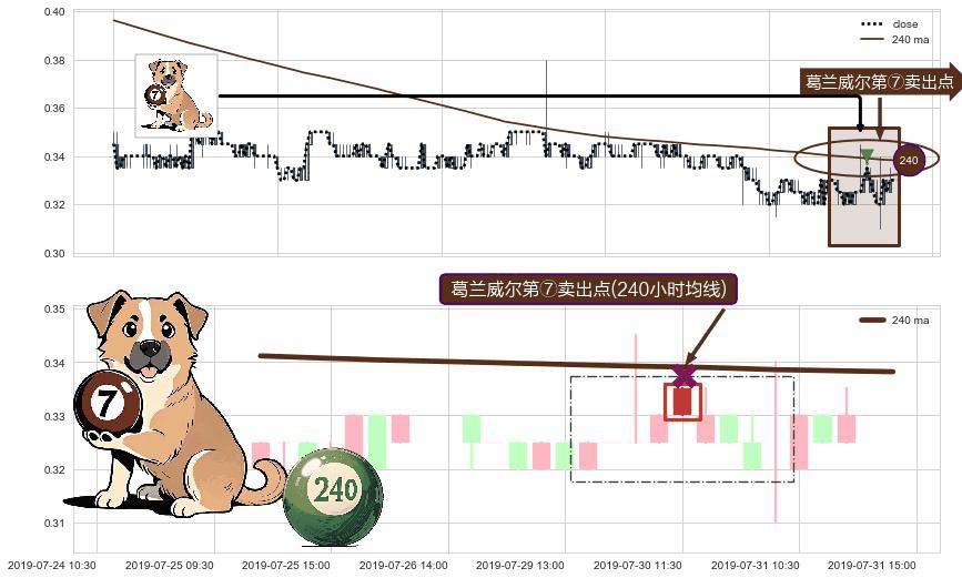 形态多维评估: ⚀ 2019-07-30 11:30:00-小时显现 葛兰威尔均线 240小时均线 第⑦卖出点 下降趋势的中继信号,后市看跌,卖出信号
