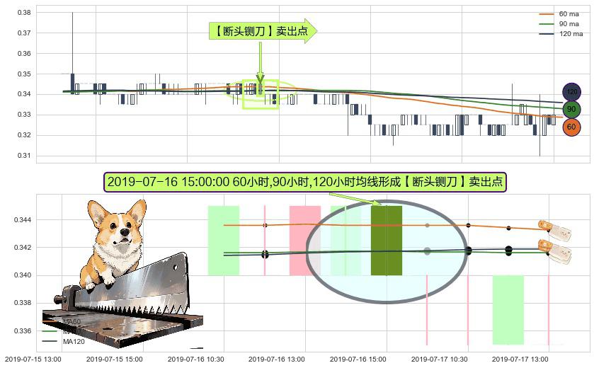 形态多维评估: ⚀ 2019-07-16 15:00:00小时显现 60小时-90小时-120小时均线 【断头铡刀】卖出点 看空信号,后市看跌,卖出