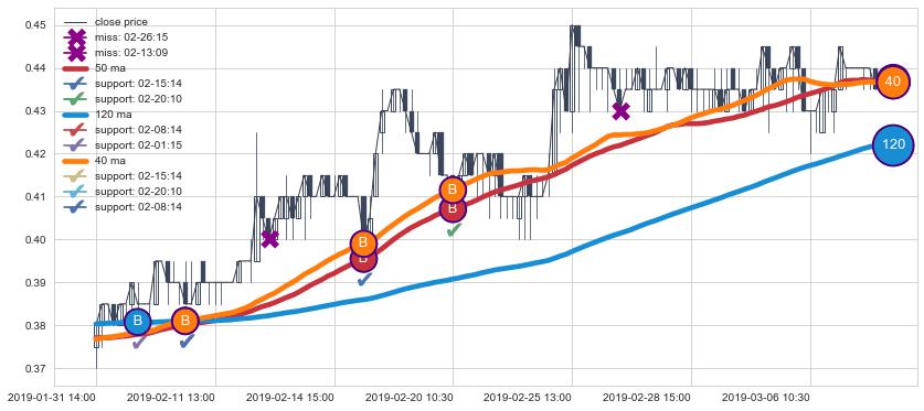 上涨趋势01-31 14:00-03-08 09:30,均线120, 50, 40确认关键支撑4处