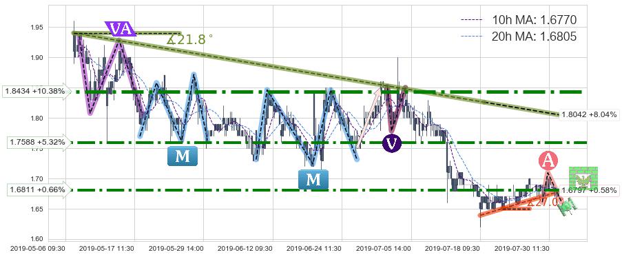 ♘ 阻力价格位1.7588,可信任强度76.48%,距离最后交易2019-07-31 15:00形成的收盘价格1.6700相差 +5.32%
