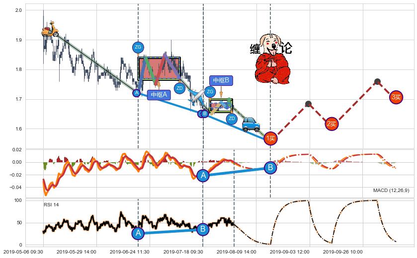 ➣ 【未完成】缠论 起点:05-07:09, 完成第1中枢A,完成第2中枢B,到达07-31:15