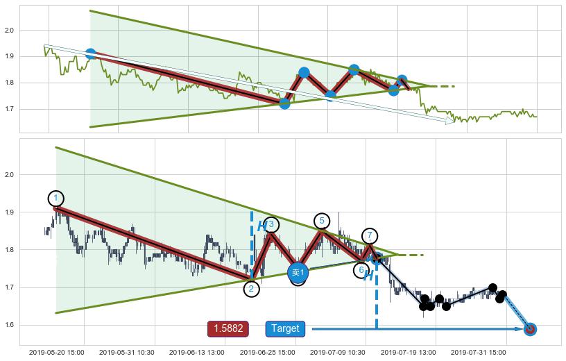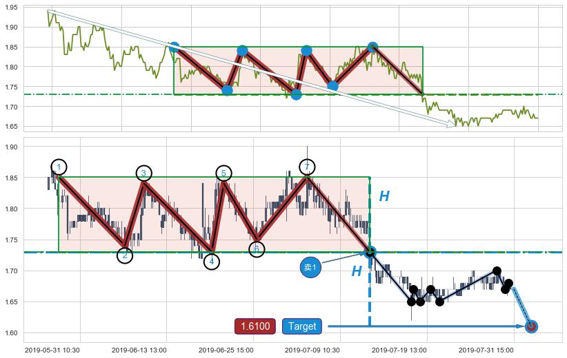 ➣ 最小中继整理跌幅→𝐇: 0.120000 (上平行阻力线与下平行支撑线的垂直距离)