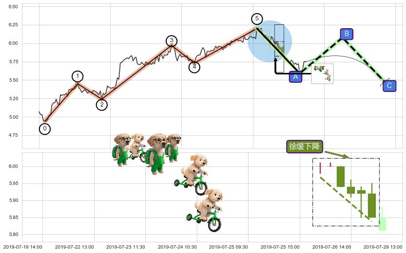 | 6 🅚:顶部尽头线(下山虎) ➕ 🌊:波浪理论猜想上涨浪5已形成,猜想后续形成回调abc下跌(均值回复) ☞ 看空信号 ⇥ 【🅚线】交织【图形】⇥ 综合量化分数: 47 | > |