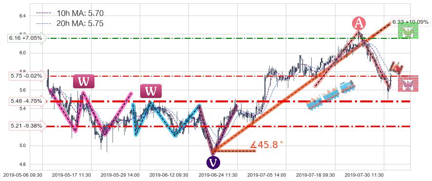 ♘ 支撑价格位5.48,可信任强度70.74%,距离最后交易2019-07-31 15:00形成的收盘价格5.75相差 -4.75%