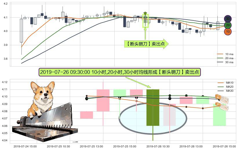 形态多维评估: ⚀ 2019-07-26 09:30:00小时显现 10小时-20小时-30小时均线 【断头铡刀】卖出点 看空信号,后市看跌,卖出