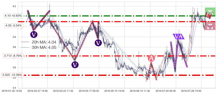 ♘ 阻力价格位4.10,可信任强度75.73%,距离最后交易2019-07-31 15:00形成的收盘价格4.07相差 +0.83%