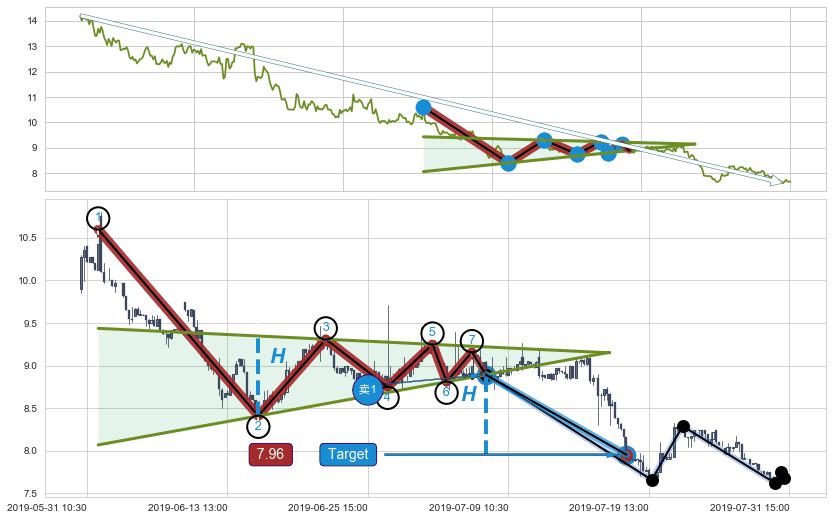 ➢ 最小中继整理涨幅→𝐇: 5.33 (𝐇楔型旗杆的长度:楔型起点→顶点)