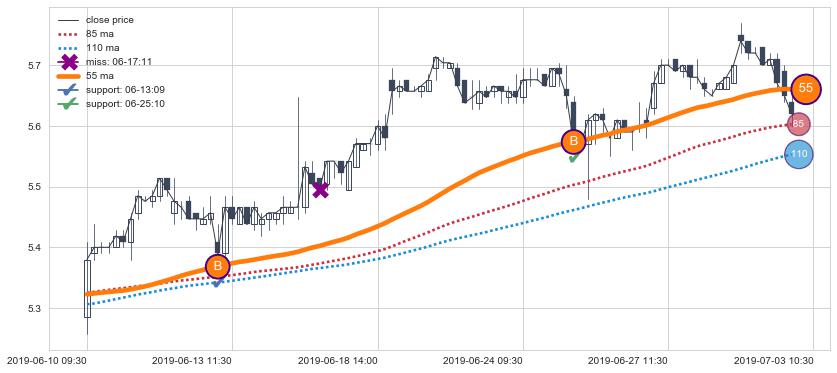 上涨趋势06-10 09:30-07-03 10:30,均线55确认关键支撑2处