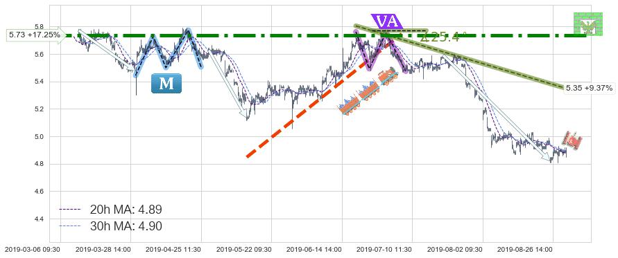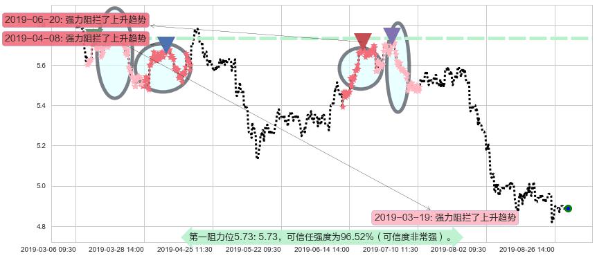 ♘ 阻力价格位5.73,可信任强度96.52%,距离最后交易2019-08-29 15:00形成的收盘价格4.89相差 +17.25%