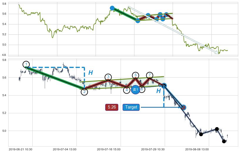 ➣ 最小中继整理跌幅→𝐇: 0.244000 (𝐇旗杆的长度:旗杆起点→顶点)