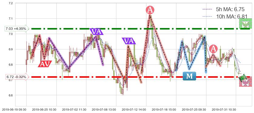 ♘ 阻力价格位7.03,可信任强度99.90%,距离最后交易2019-07-31 15:00形成的收盘价格6.74相差 +4.35%