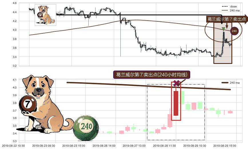 形态多维评估: ⚀ 2019-08-28 11:30:00-小时显现 葛兰威尔均线 240小时均线 第⑦卖出点 下降趋势的中继信号,后市看跌,卖出信号