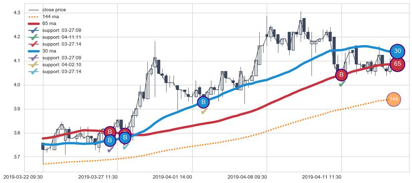 上涨趋势03-22 09:30-04-15 13:00,均线65, 30确认关键支撑4处