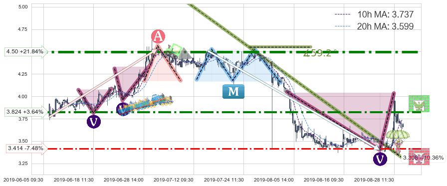 ♘ 阻力价格位3.824,可信任强度78.87%,距离最后交易2019-08-29 15:00形成的收盘价格3.690相差 +3.64%