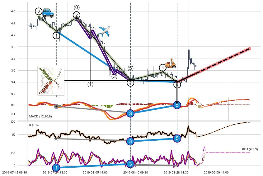➢ 1,3,5驱动浪MACD, RSI, KDJ走势都出现【常规背离】反转信号增强