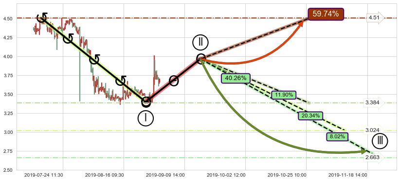 ➢ 循环浪继续向下【最高】位置(10-25:15, 3.384),匹配聚类样本比例29.56%, 可能性概率11.90%