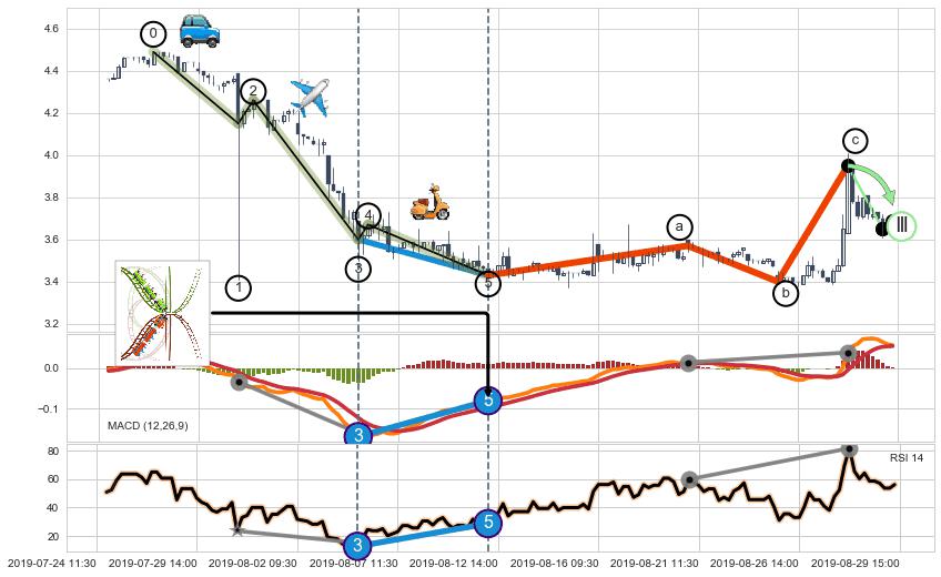 ➣ a,c调整浪MACD, RSI, KDJ走势都【未出现】背离,abc走势延续, 5浪反转概率增强