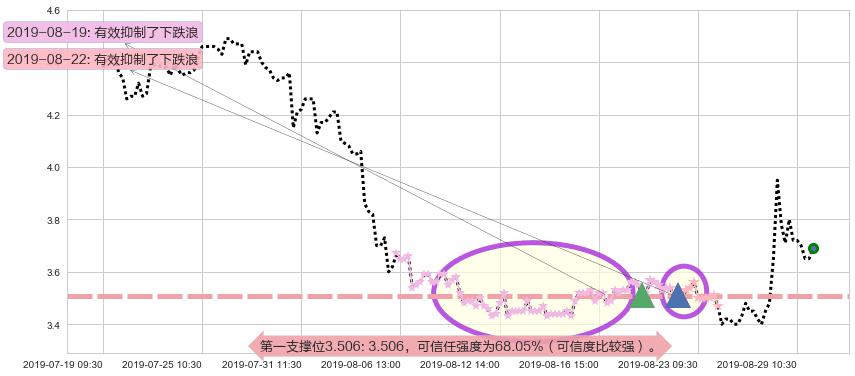 2019-08-22: 第一支撑位3.506有效抑制了下跌浪,成功阻止了价格的继续下跌。