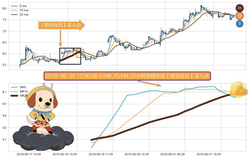 ⚀ 2019-06-18 15:00:00小时-2019-06-24 10:30:00小时显现 5小时-10小时-20小时均线 【烘云托月】买入点 看多信号,后市看涨,买入