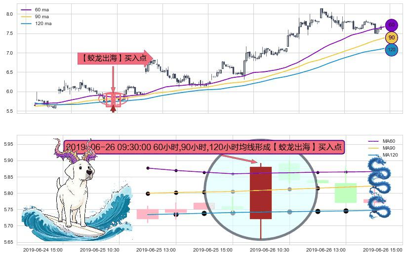 ⚀ 2019-06-26 09:30:00小时显现 60小时-90小时-120小时均线 【蛟龙出海】买入点 看多信号,后市看涨,买入