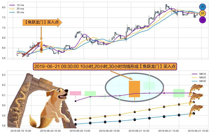 ⚀ 2019-06-21 09:30:00小时显现 10小时-20小时-30小时均线 【鱼跃龙门】买入点 看多信号,后市看涨,买入