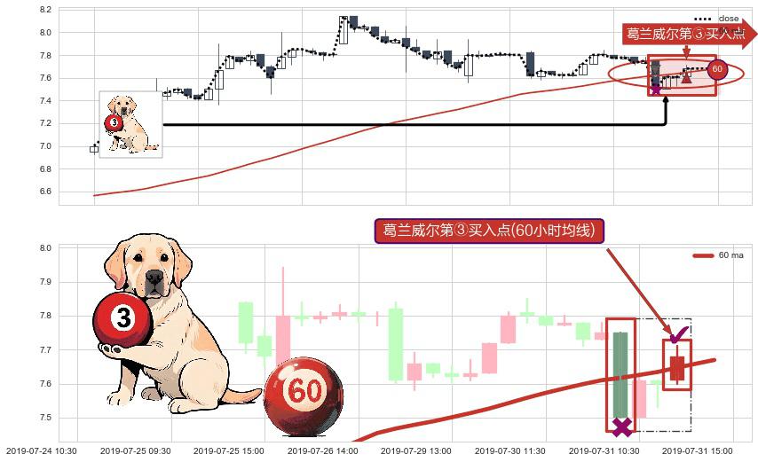 ⚀ 2019-07-31 13:00:00-小时显现 葛兰威尔均线 60小时均线 第③买入点 上升趋势的中继信号,后市看涨,买进信号