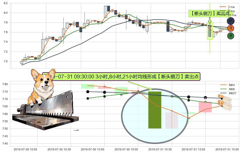 ⚀ 2019-07-31 09:30:00小时显现 3小时-8小时-21小时均线 【断头铡刀】卖出点 看空信号,后市看跌,卖出