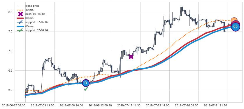 ⚂ 2019-07-31 09:30:00-小时均线向下破位,2019-07-31 13:00:00-小时重新上穿突破均线,均线支撑再次生效