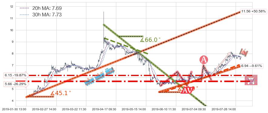 ♞ 20小时均线:7.69,30小时均线:7.73→ 快线<慢线