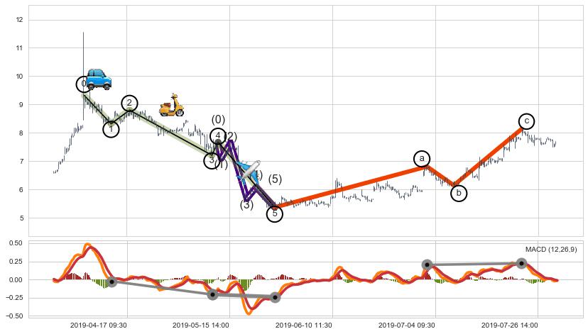 ➣ a,c调整浪MACD走势未出现明显背离