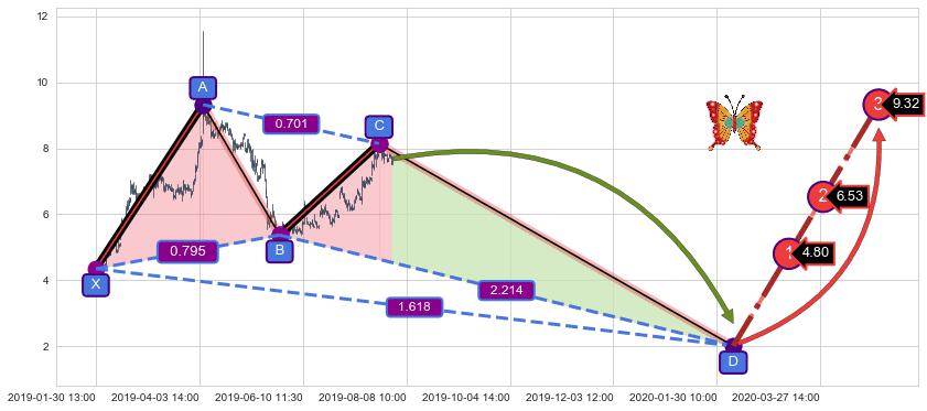 ➣ 未完成【蝴蝶】形态起点X: 01-30:13, 已到达C点: 07-24:09, 预测最终D点: 02-07:14, 共1536交易小时