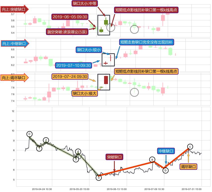 ➢ 2019-07-24 09:30形成:向上跳空【竭尽】缺口