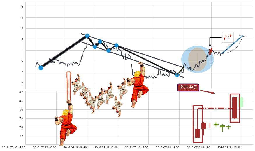 ➢ 低点影线(07-25:09: 7.65 )→回踩→第一根k线高点(07-23:15: 7.82 )