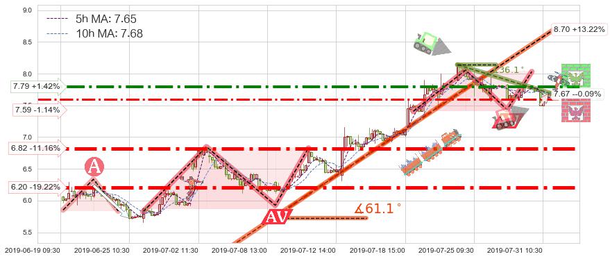 ♘ 支撑价格位7.59,可信任强度62.66%,距离最后交易2019-07-31 15:00形成的收盘价格7.68相差 -1.14%