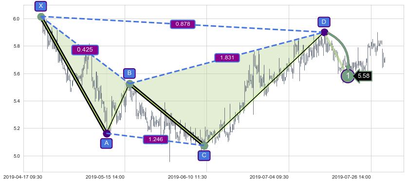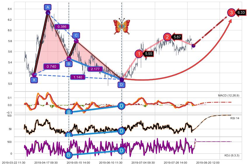 ➣ 已完成【蝴蝶】形态起点X: 03-28:15, 终点D: 06-06:15, 共271交易小时