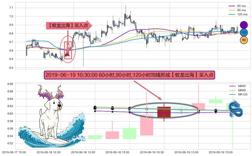 ⚀ 2019-06-19 10:30:00小时显现 60小时-90小时-120小时均线 【蛟龙出海】买入点 看多信号,后市看涨,买入