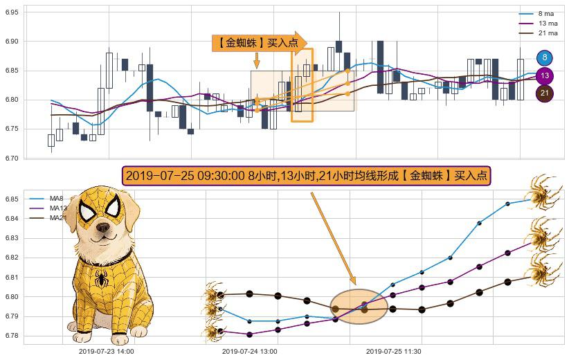 ⚀ 2019-07-25 09:30:00小时显现 8小时-13小时-21小时均线 【金蜘蛛】买入点 看多信号,后市看涨,买入