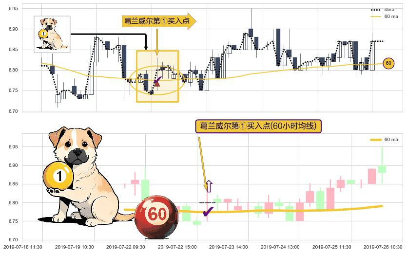 ⚀ 2019-07-23 09:30:00-小时显现 葛兰威尔均线 60小时均线 第买①入点 走势反转见底信号,后市看涨,买进信号