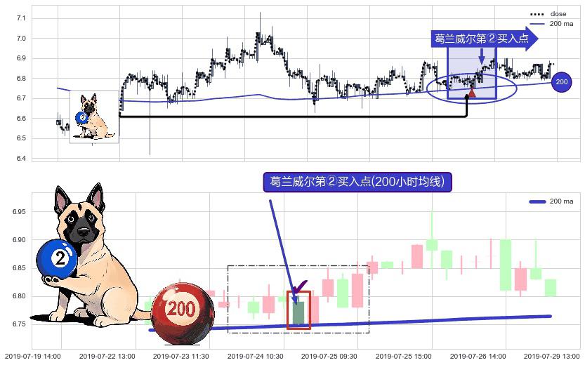 ⚀ 2019-07-24 11:30:00-小时显现 葛兰威尔均线 200小时均线 第②买入点 上升趋势的中继信号,后市看涨,买进信号