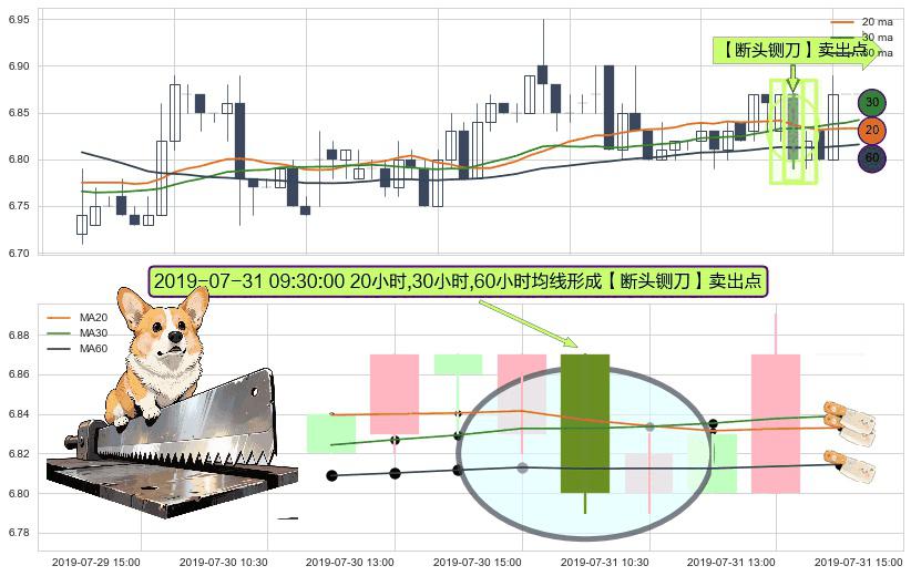 ⚀ 2019-07-31 09:30:00小时显现 20小时-30小时-60小时均线 【断头铡刀】卖出点 看空信号,后市看跌,卖出
