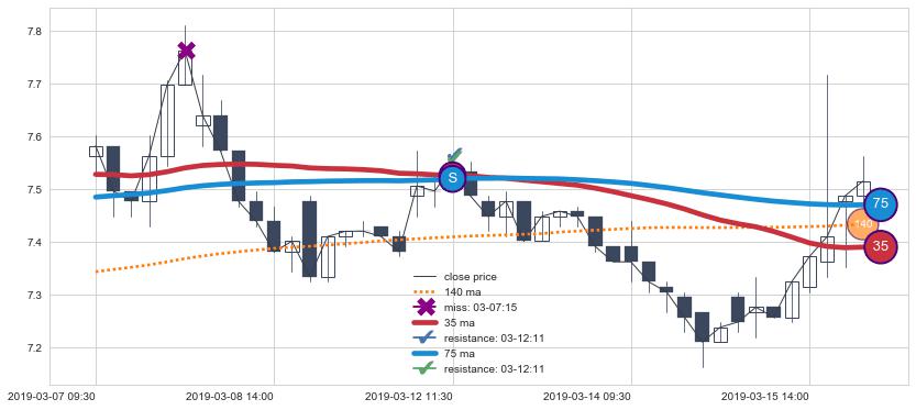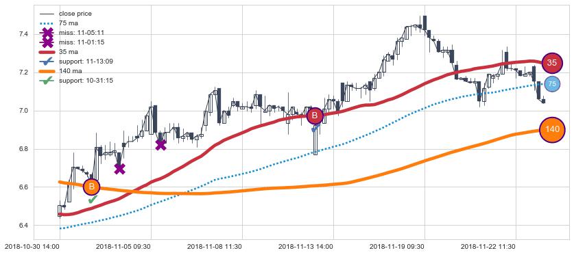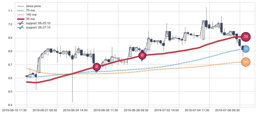 ⚄ 价格在均线获取支撑后再次向上反弹了【较短】距离, 第②买入点 支撑效果【仍需验证】