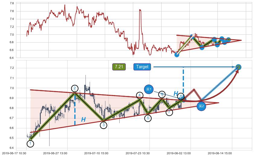 ➣ 【仅预测突破】最后价格:6.87与预测突破价格:6.88→【空间临近】后续最小【整理】第一目标价格→(08-16:11: 7.21 )
