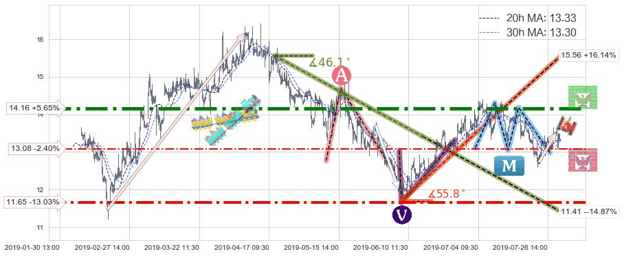 ♘ 阻力价格位14.16,可信任强度89.21%,距离最后交易2019-07-31 15:00形成的收盘价格13.40相差 +5.65%