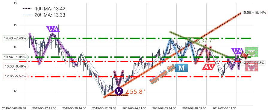 ♘ 阻力价格位13.54,可信任强度88.94%,距离最后交易2019-07-31 15:00形成的收盘价格13.40相差 +1.01%