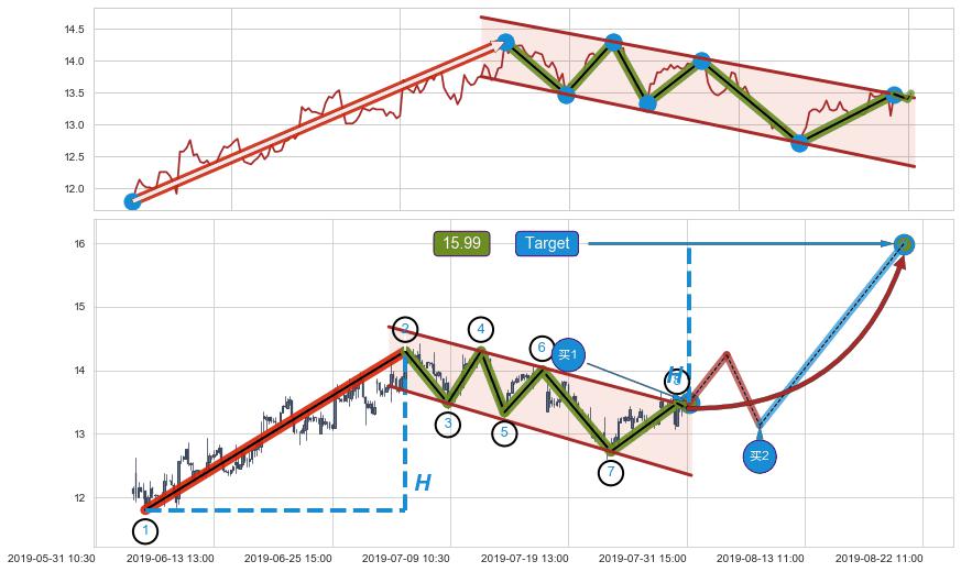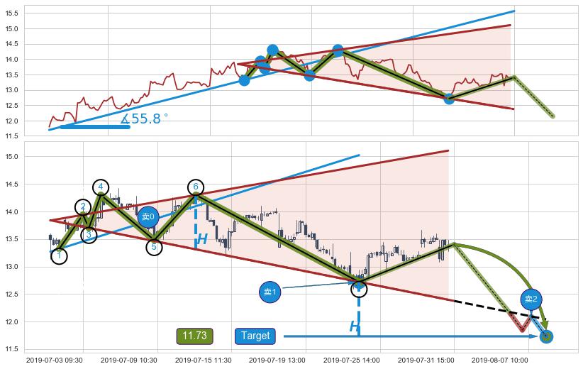 ➣ 【仅预测突破】最后价格:13.40与预测突破价格:13.22→【空间临近】后续最小【整理】第一目标价格→(08-07:15: 11.64 )