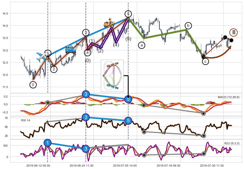 ➣ a,c调整浪MACD, RSI, KDJ走势都【未出现】背离,abc走势延续, 5浪反转概率增强