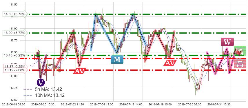 ♘ 阻力价格位13.43,可信任强度88.63%,距离最后交易2019-07-31 15:00形成的收盘价格13.40相差 +0.23%
