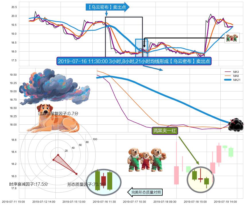 从2019-07-16 09:30至2019-07-19 10:30,共包含20个小时,阶段股价上涨3.81%,阶段股价变动位移路程比: 1 : 3