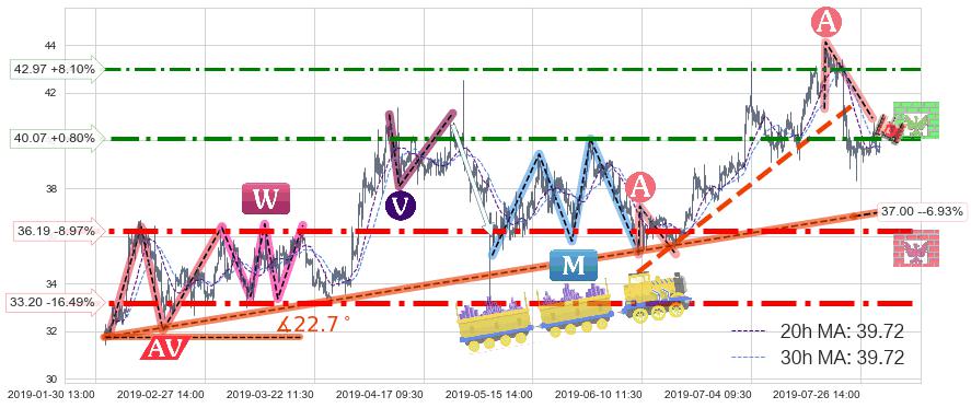 ♘ 阻力价格位42.97,可信任强度56.87%,距离最后交易2019-07-31 15:00形成的收盘价格39.75相差 +8.10%